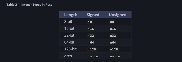 - isize and usize types depend on the architecture of the computer